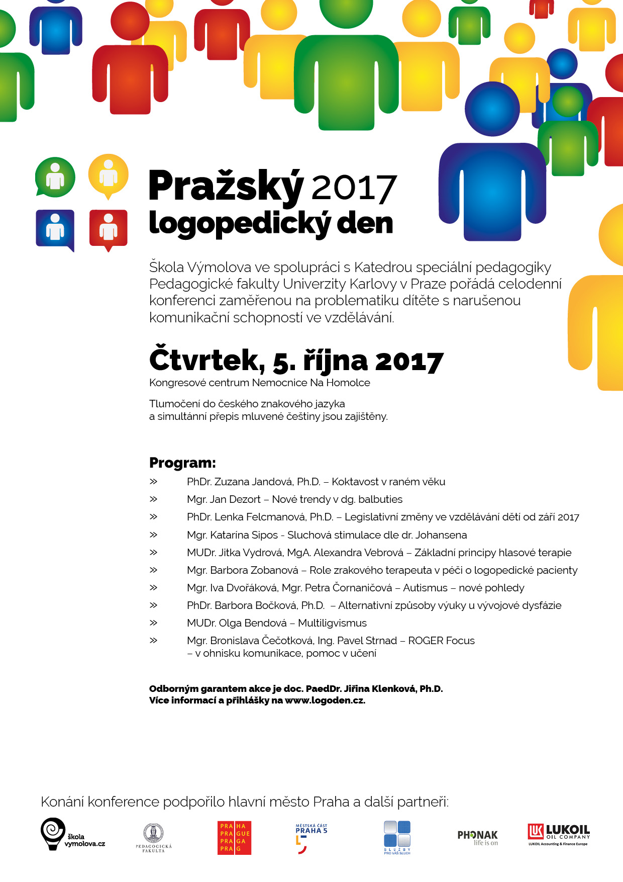 5. října 2017 v Praze se uskuteční druhý ročník konference k problematice dítěte s narušenou komunikační schopností ve vzdělávání. Pořádá SŠ, ZŠ a MŠ Výmolova, Praha ve spolupráci s katedrou spec - ped. PedF UK Praha.