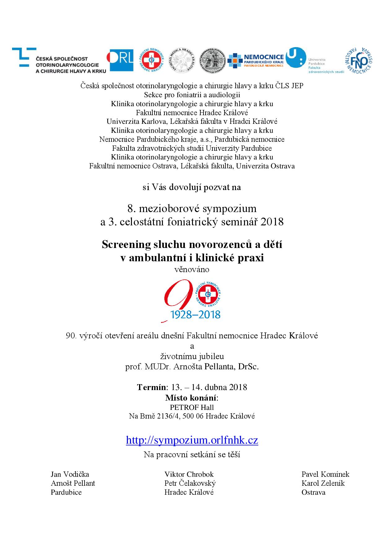 informace o: 8. mezioborovém sympoziu a 3. celostátním foniatrickém semináři 2018 v Hradci Králové 13.-14.4.2018