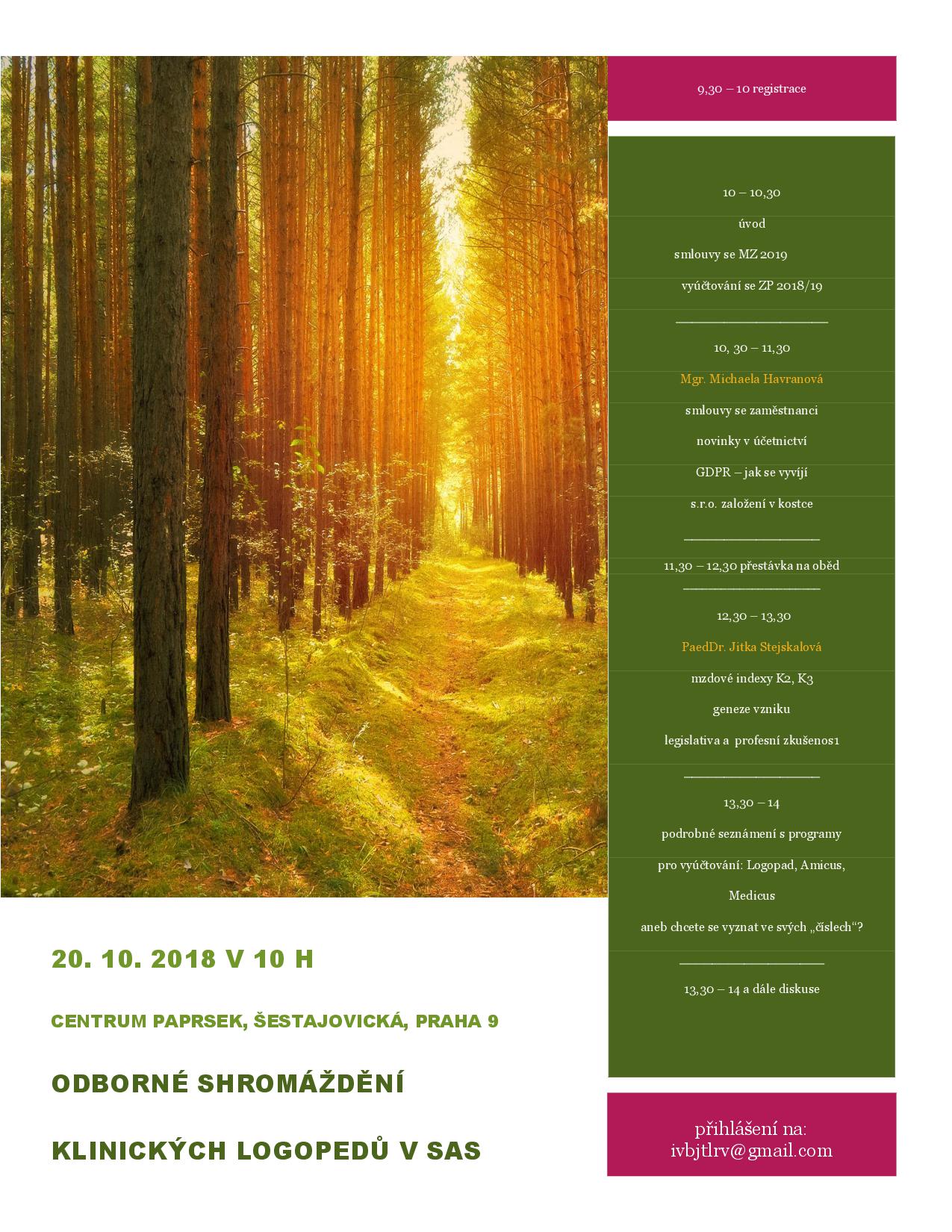 dnes 20.10.2018 se uskuteční Odborné shromáždění klinických logopdů v SAS, v Paprsku, v Praze.
