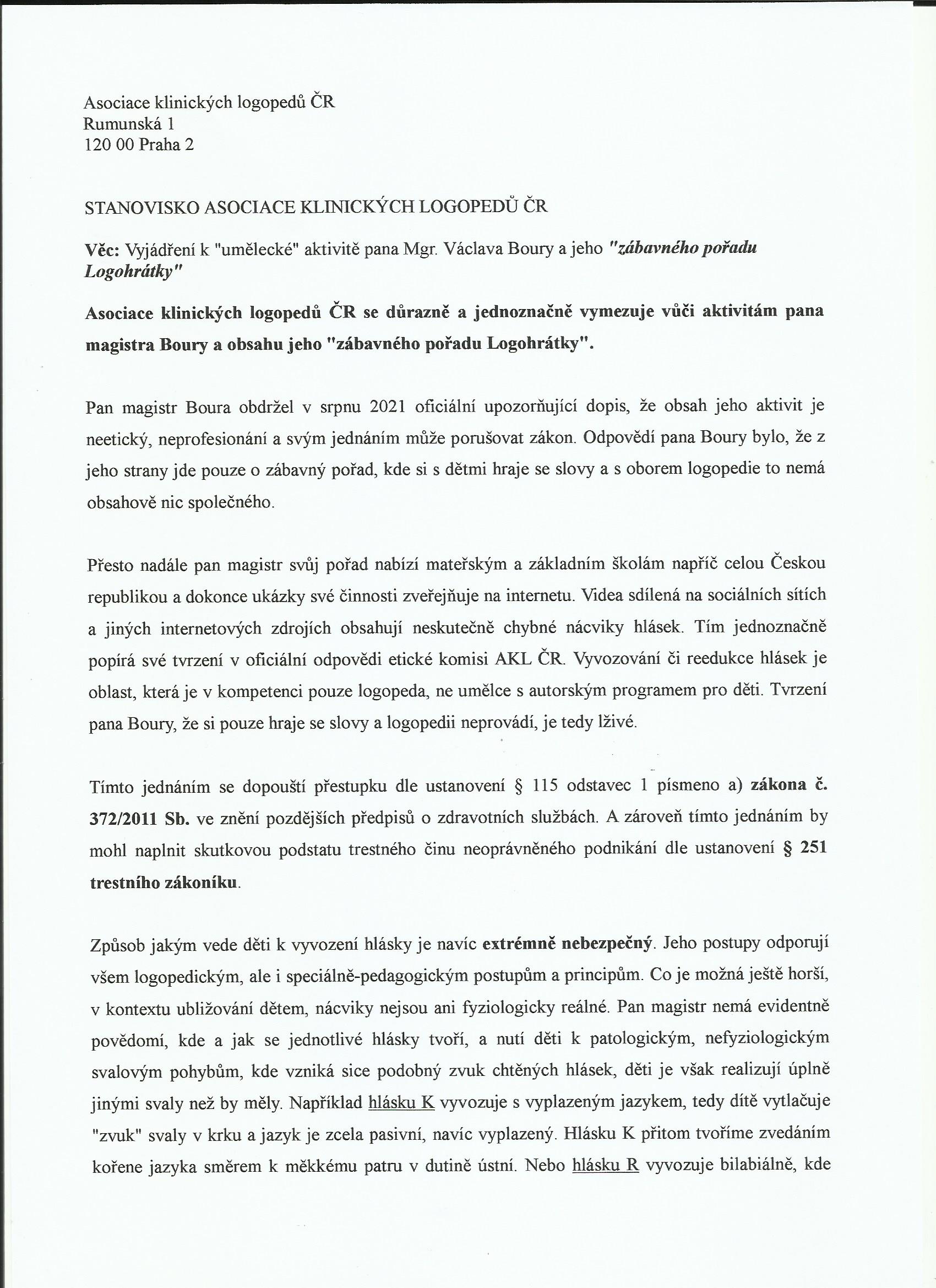 stanovisko AKL ČR k Logohrátkám Mgr. Boury