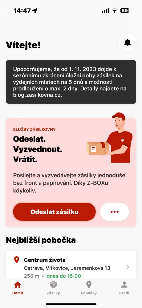 Vyberete, kam se má zásilka odeslat- tedy buď Vaši vlastní adresu domů nebo zásilkovnu, kterou máte nejblíže